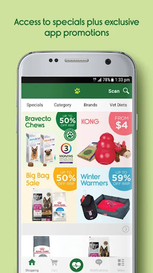 Browse your way through a wide range of premium brands of your favourite pet food, vet prescription food, flea, tick & worming treatments, toys, treats & much more! Quality food brands on offer include Royal Canin, Hill’s Science Diet, Black Hawk, Advance, Iams and Meals For Mutts. Premium flea, tick and worming treatments from Bravecto, Nexgard Spectra, Advocate, Nexgard, Revolution, Sentinel, Comfortis Plus and more.