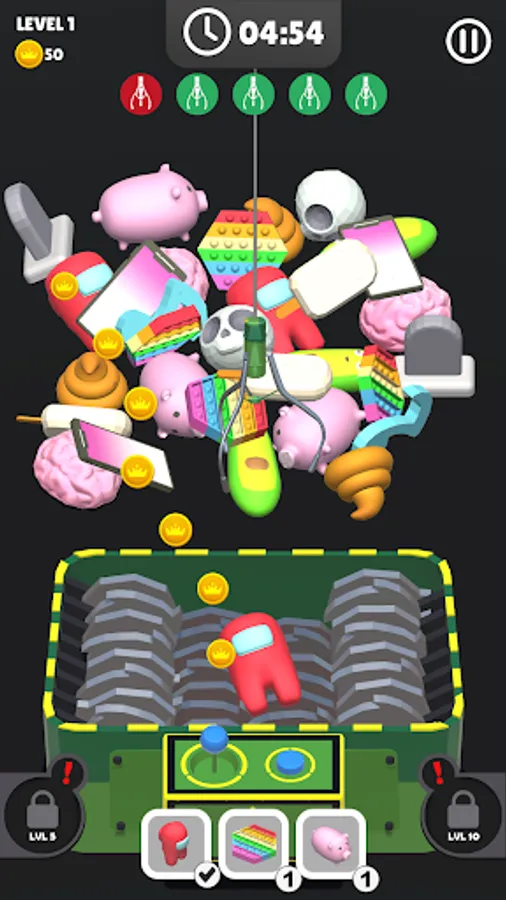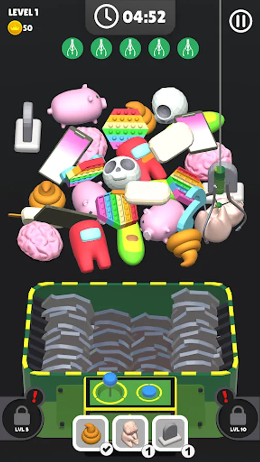 You have to grab the objects by controlling the claw, then throw them to shredder machine.
