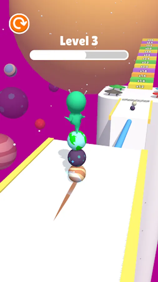 The taller your ball tower is, the easier it will be to escape from the obstacles. Different environments and concepts awaits you at each level! There are thin roads, glass roads and rails where you have to be careful while passing through them!