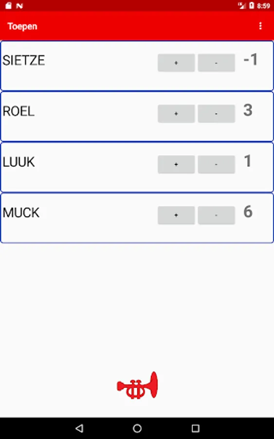 The app is developed specially for the Dutch game "Toepen". Because of the simplicity of the app it can be used for every game that needs scorekeeping.