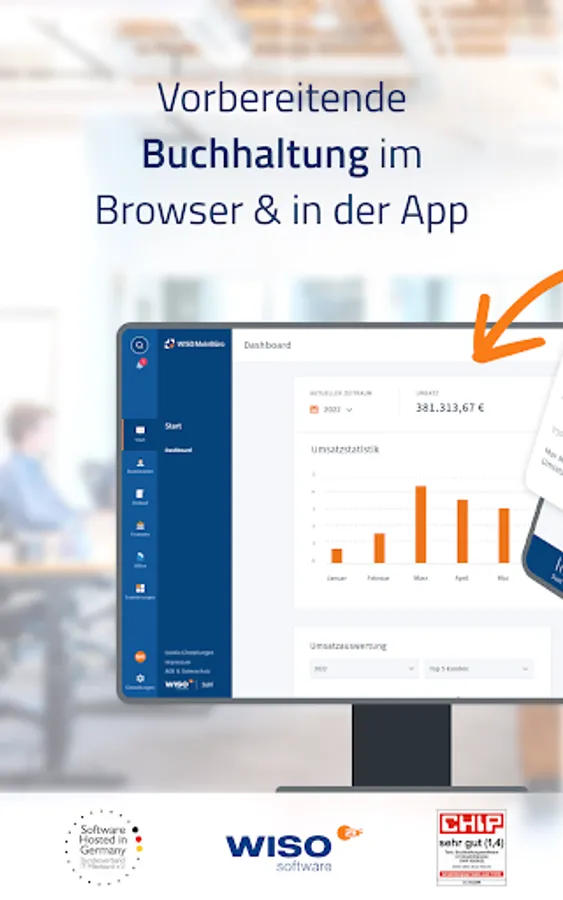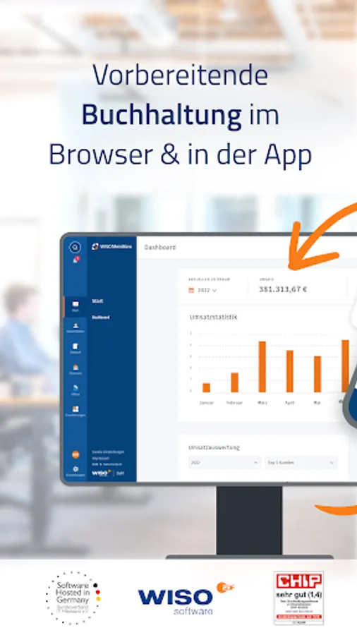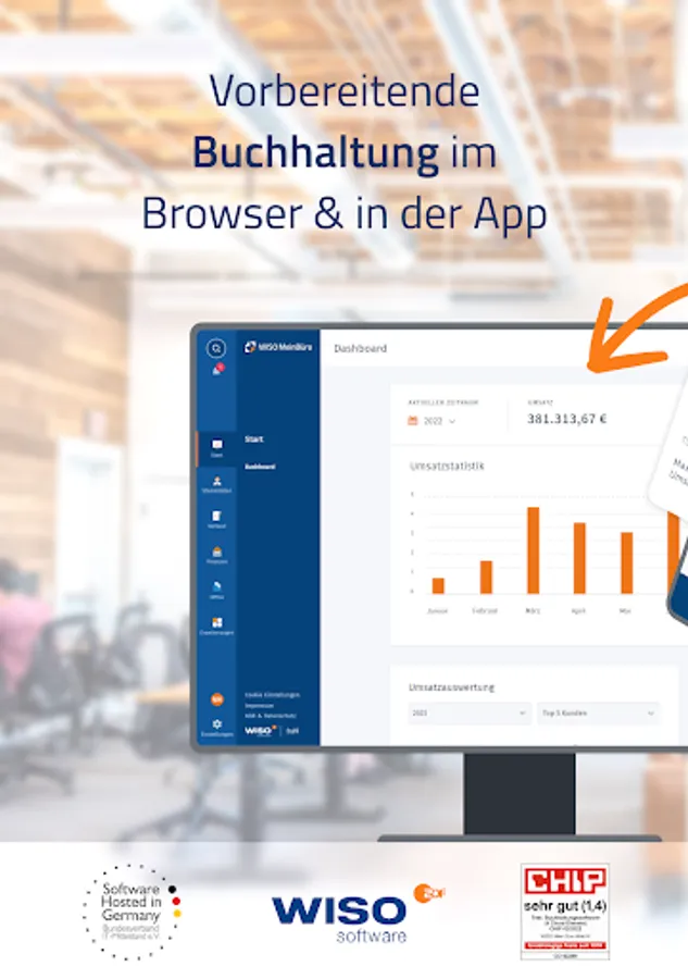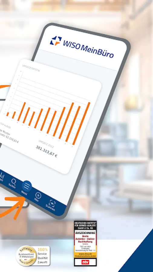 The WISO MeinBüro App is the mobile supplement for WISO MeinBüro Web - the digital online office for your browser. Take care of your order processing, digital document entry, master data management and accounting conveniently on the go!