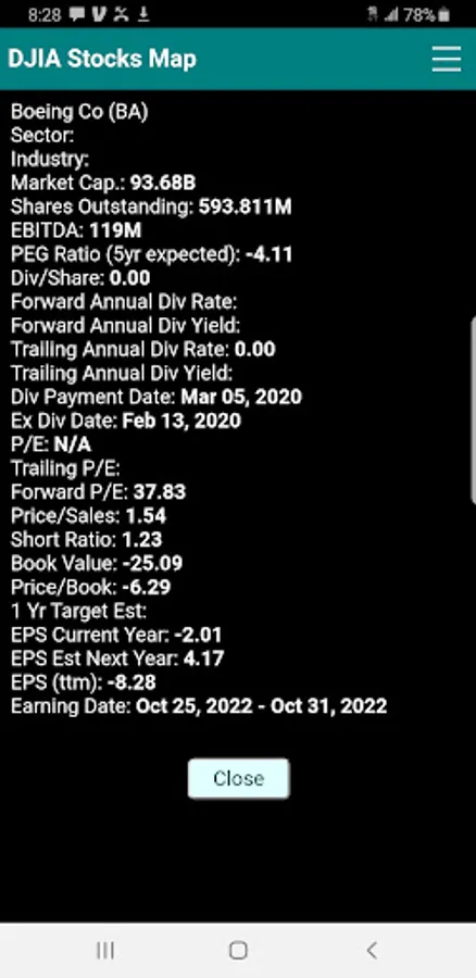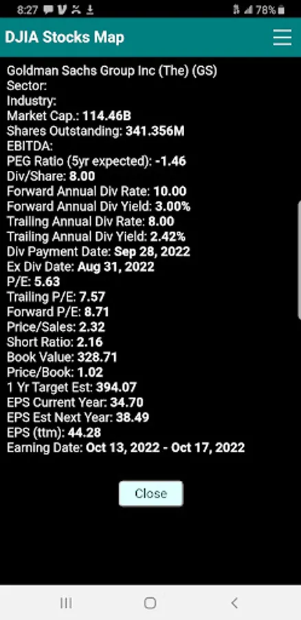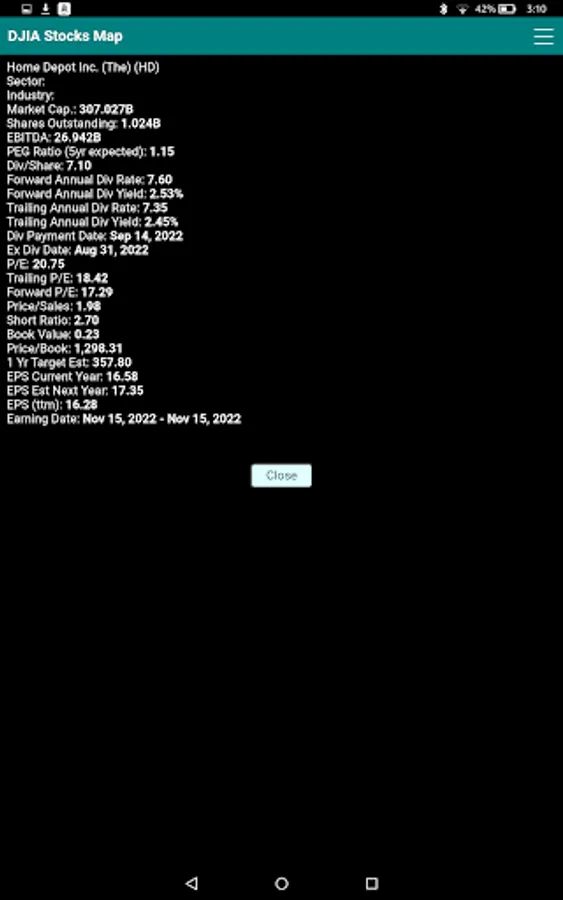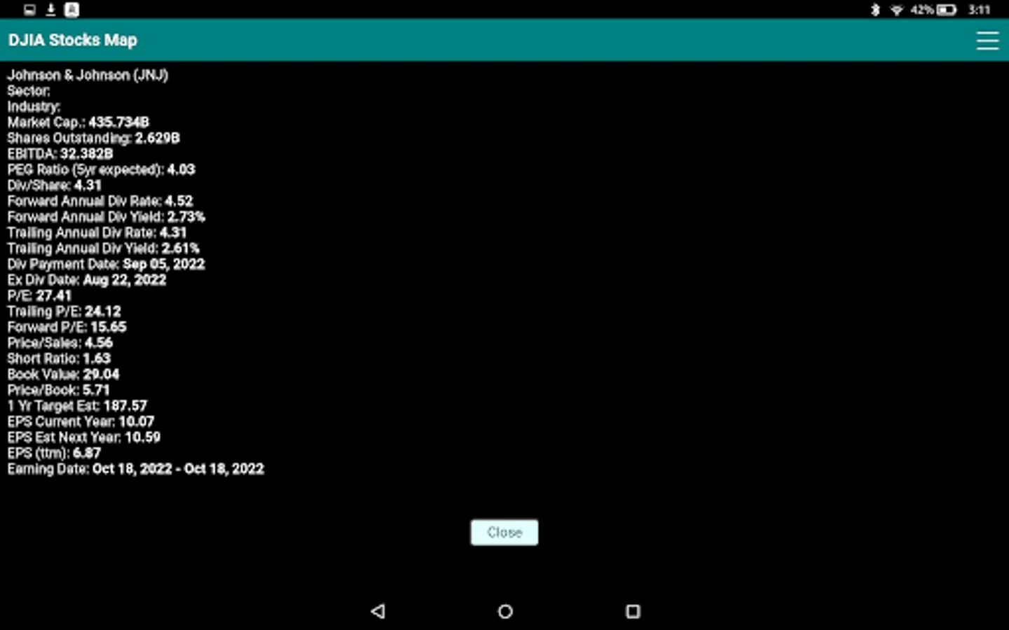 Version 3.1+ have Company fundamental data added. Company fundamental data include Market capitalization, outstanding shares, EBITDA, PEG Ratio, Dividend per share, forward and trailing dividend rate and yield, dividend payout date, ex div date, P/E, trailing and forward PE, price/sales, short ratio, book value, price/book, price target, current and forward EPS, EPS report date, EPS ttm, Basic EPA, Diluted EPS, High/Low EPS estimation, number of analysts.