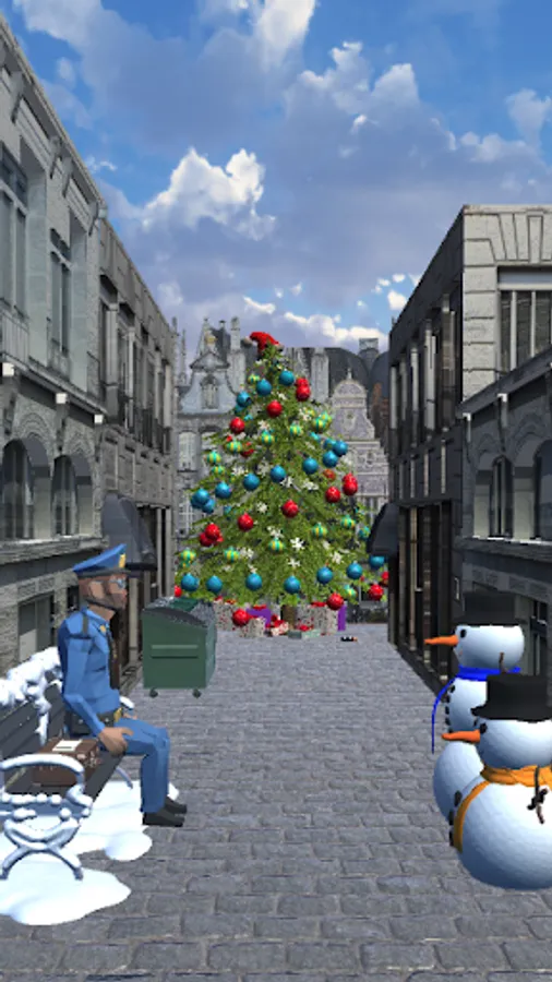 ・ Many people such as tourists enjoying the Christmas market, car drivers, and police officers watching over the city will appear.