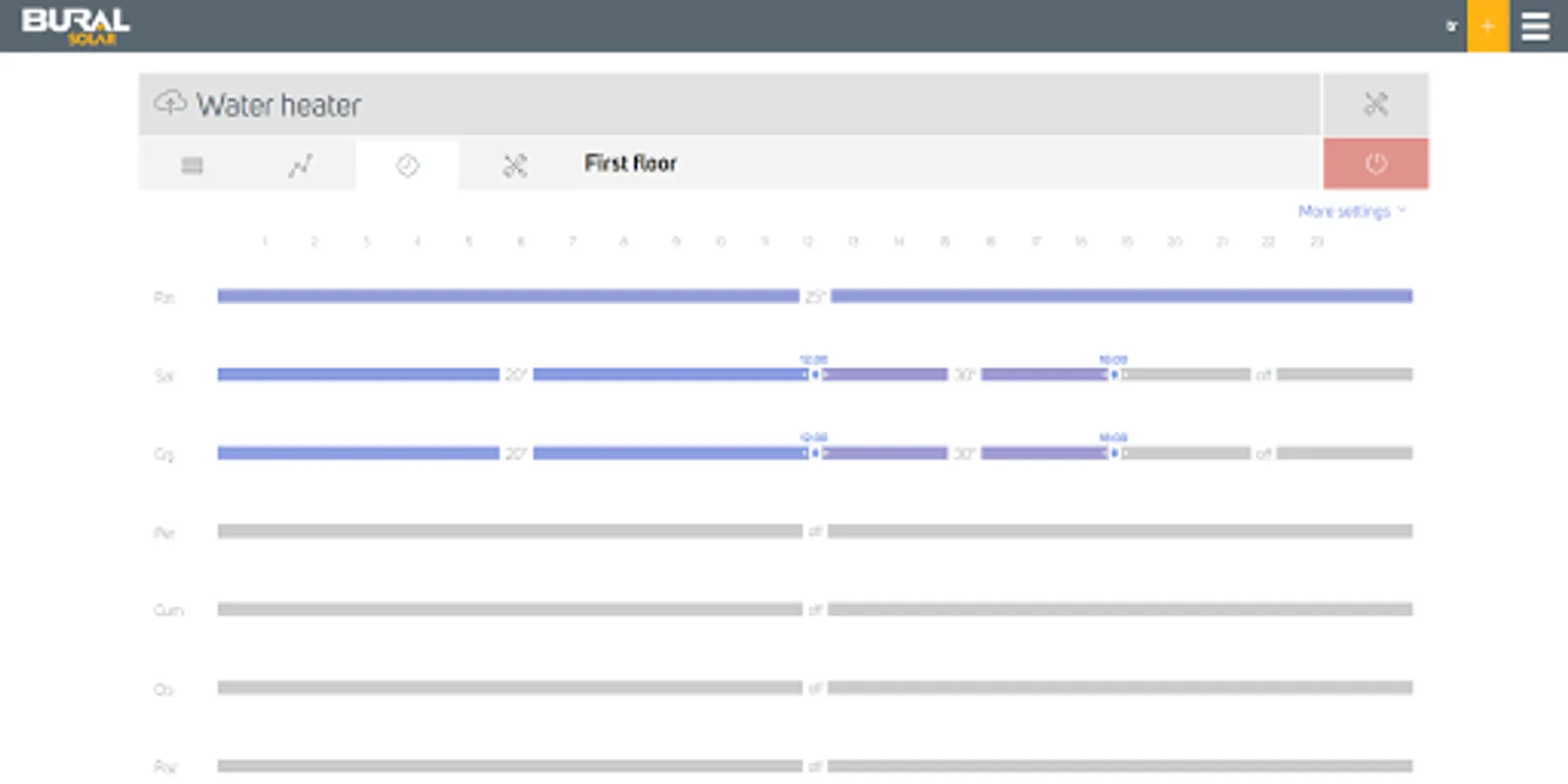 Bural Connect controls electrical support of your solar water heater in your home. You monitor its work via Internet through your PC or smartphone. With Bural Connect you can configure your solar water heater, set individual schedules for it and monitor the temperature in real time. Find out more at: