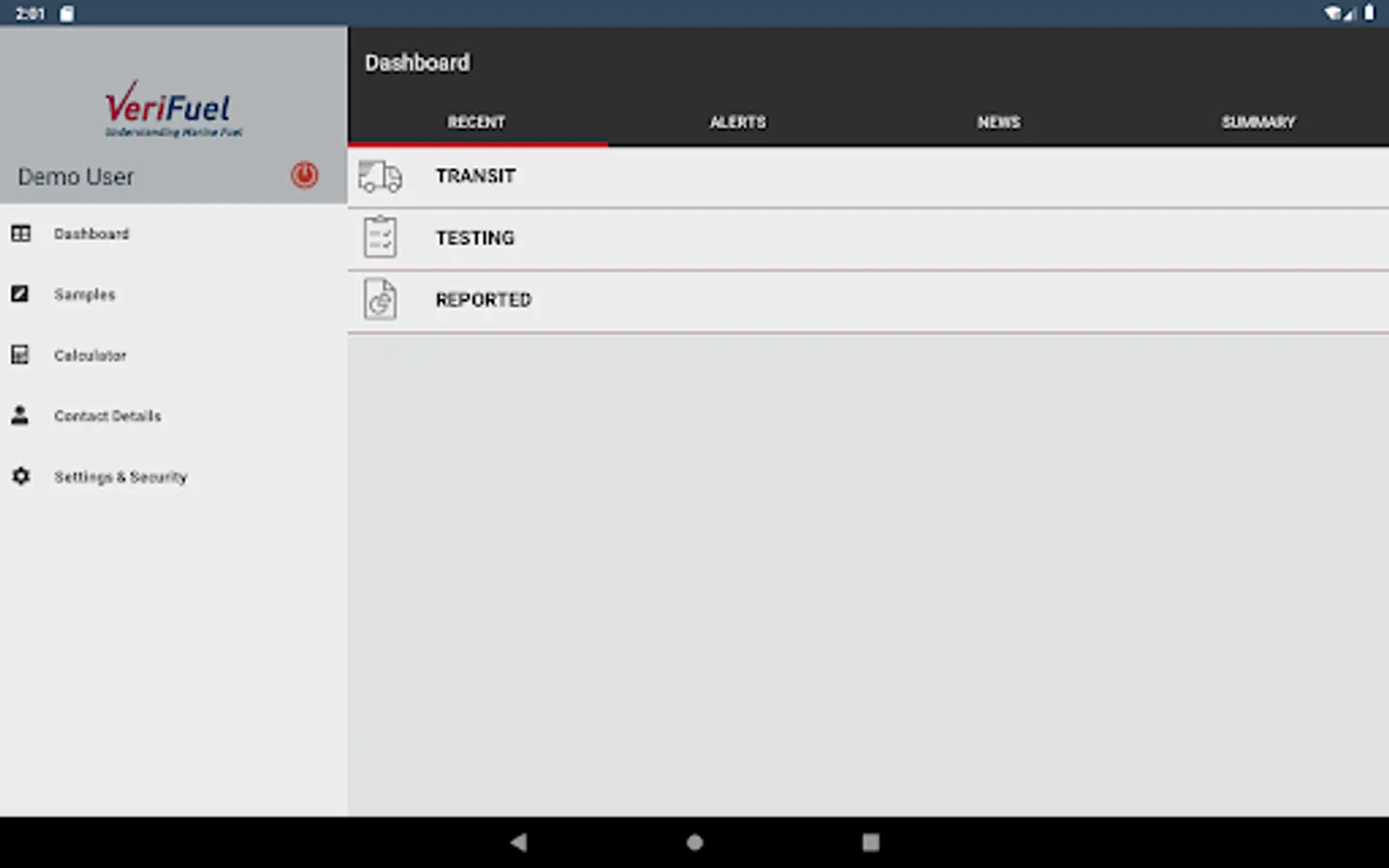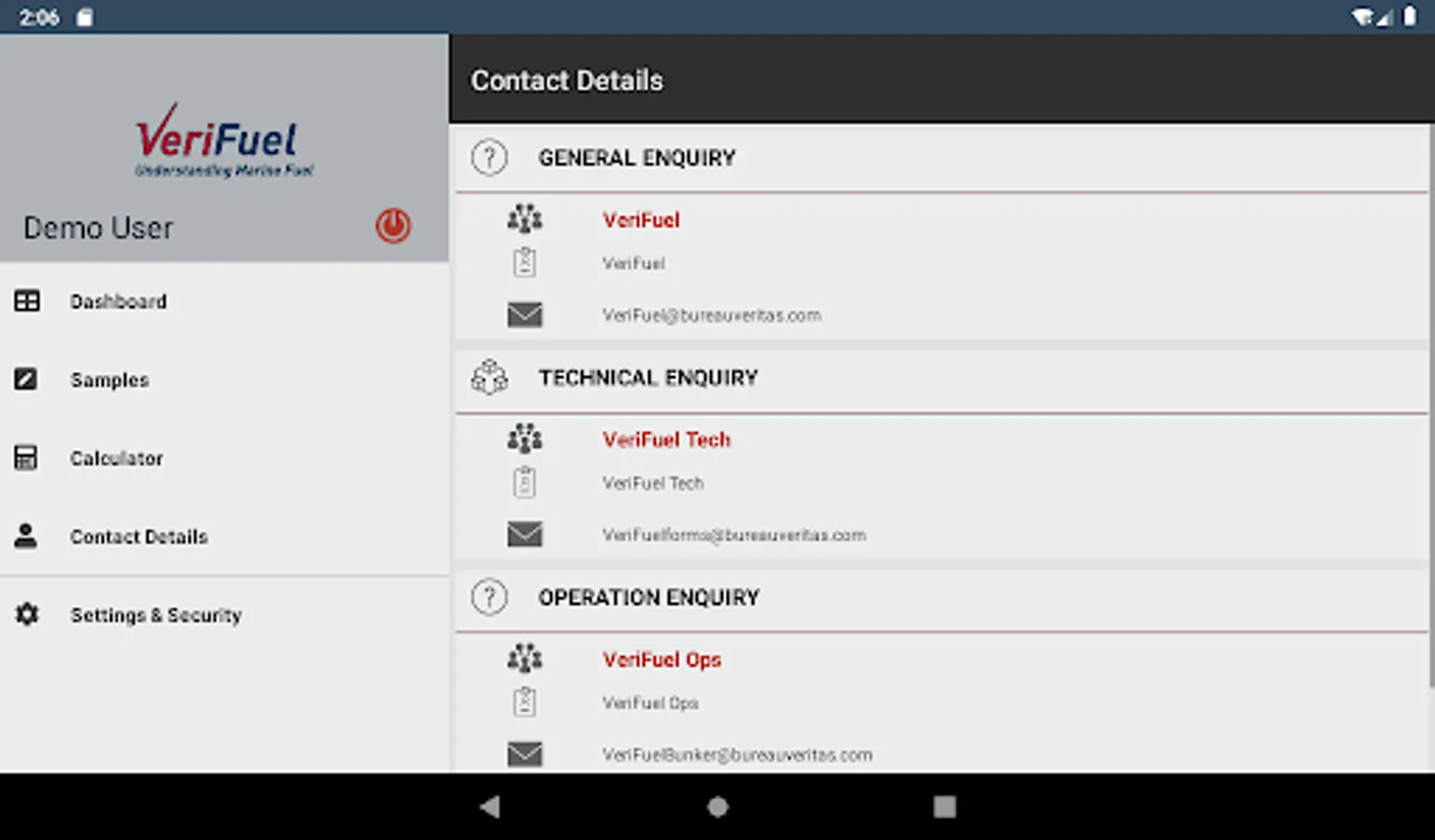 VeriFuel will simplify preparation and shipment of samples, provide expert operational guidance and assessments with comprehensive fuel reports. This VeriFuel App further provides the solutions for easy access to fuel reports, statistics and pertinent industry developments.