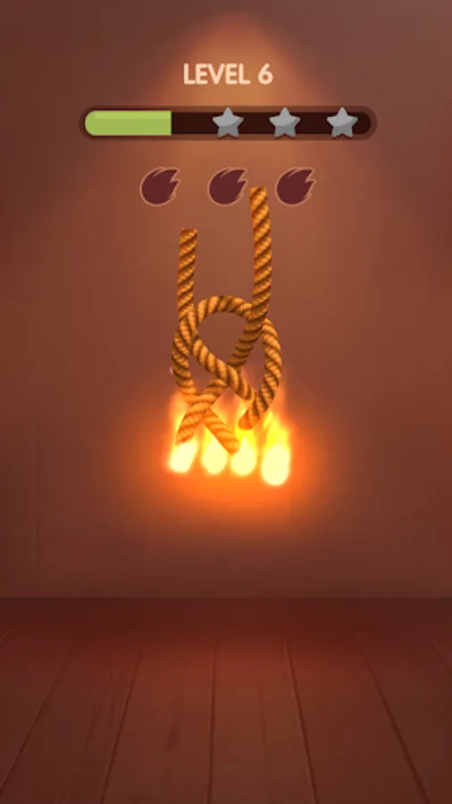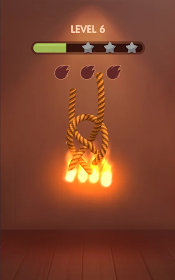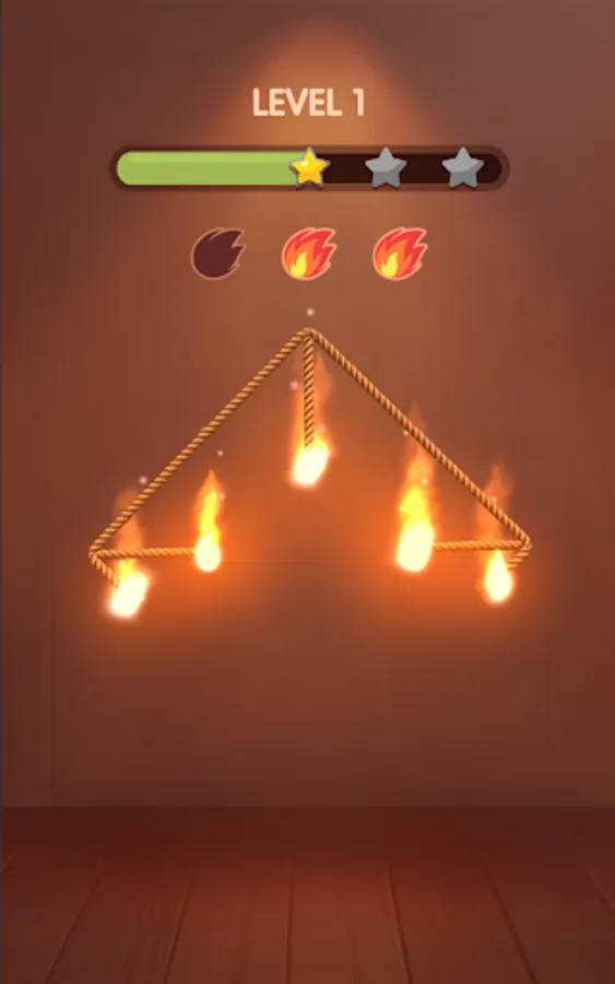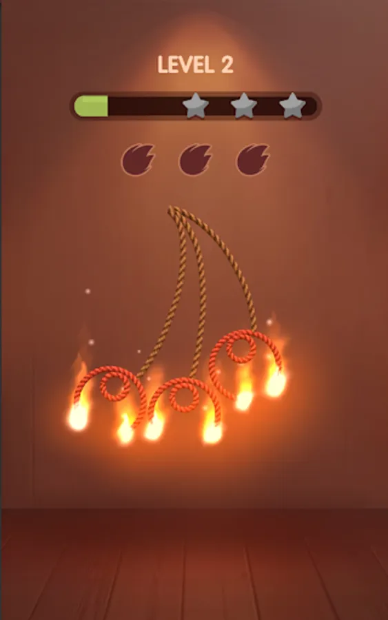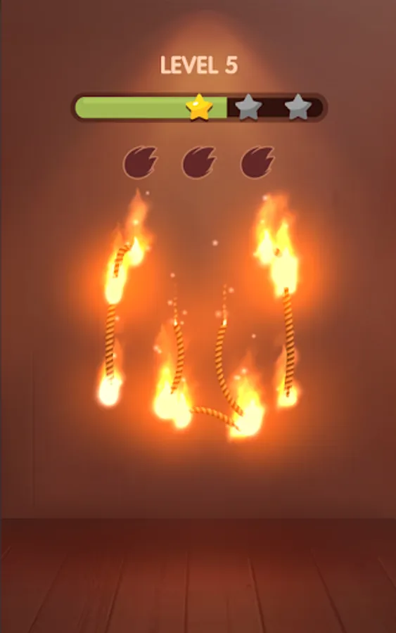 There are different shapes of ropes in front of you, and you can use a limited number of fires to ignite the ropes.