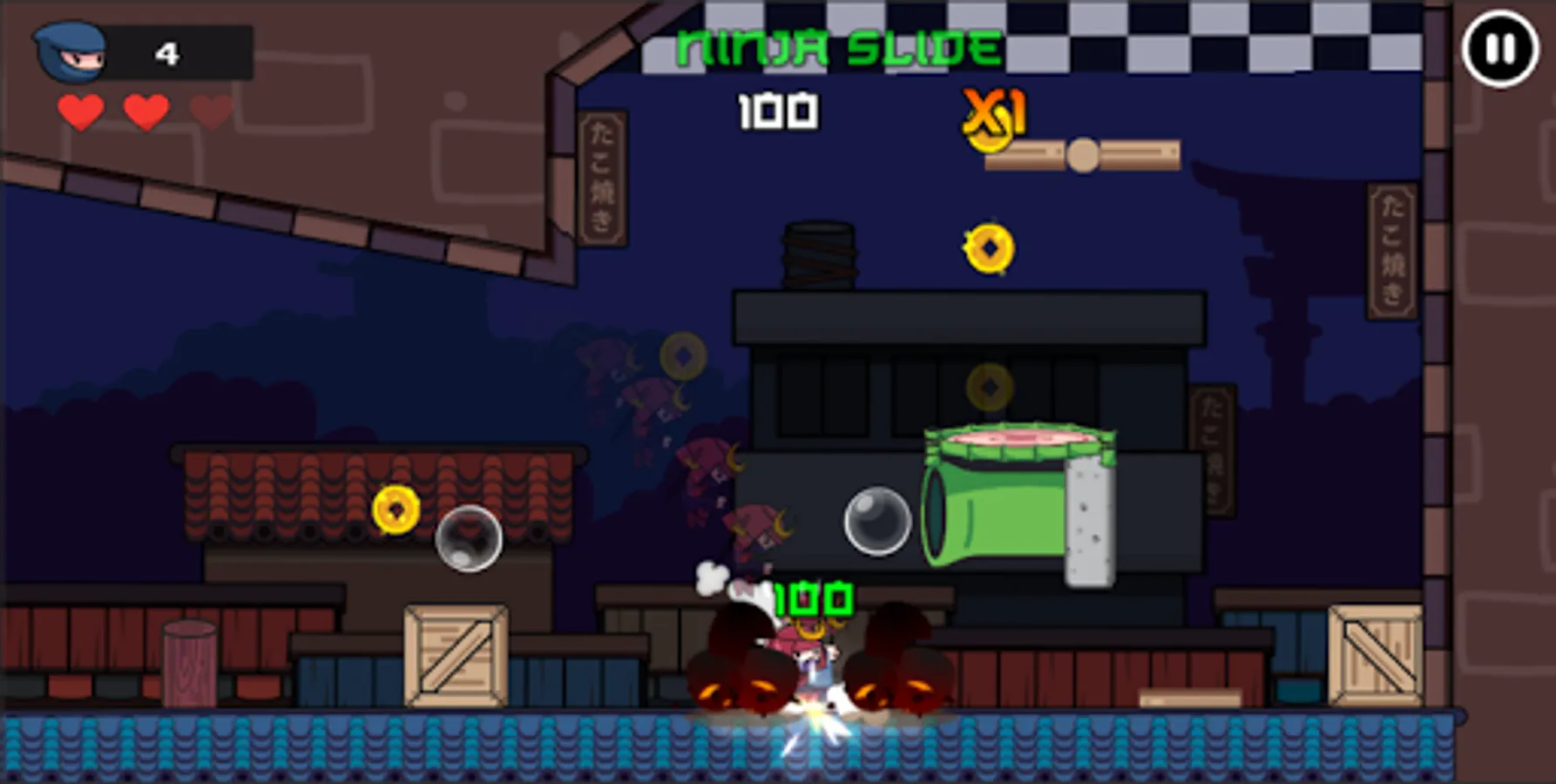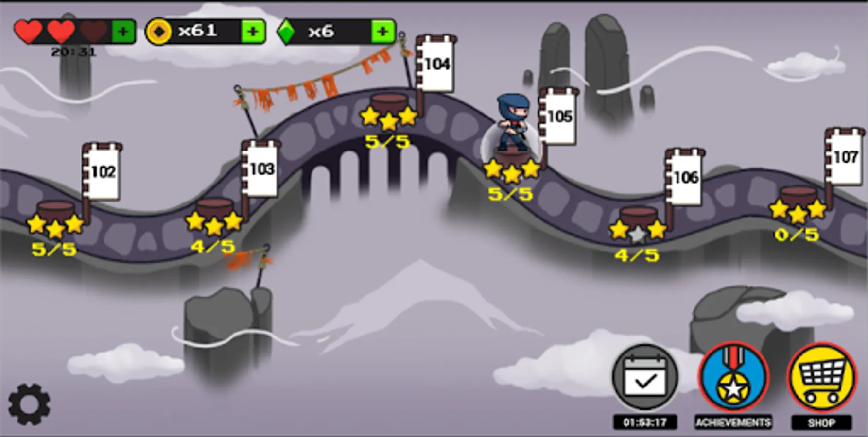 -5 different objectives to unlock that you could find at any time! Defeat angry enemies with your sword, Collect the tricky rings, Find the Lost Scrolls, Reach the Combo Score, or Reach the Distance Goal!