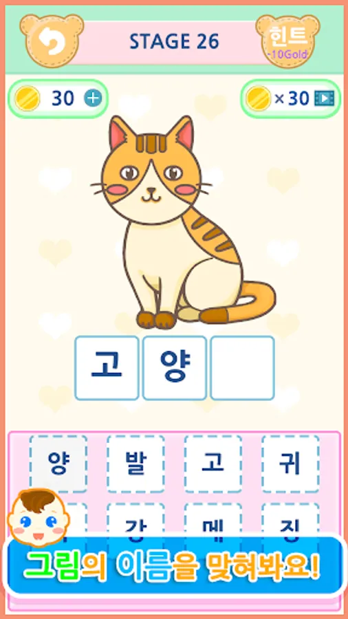 Features: 1. I learn from listening to the bar to try consonant words direct, fun Hangul.