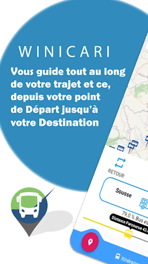 Winicari ويني كاري is the personalized travel guide for public transport users in Tunisia. Whether you are a regular or occasional user, Winicari provides you with the most accurate and up-to-date information to guide you on all your travels. This app provides you with step-by-step instructions on how to get from point A to point B by bus.