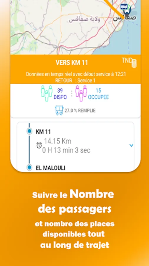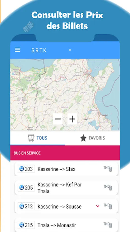 Winicari ويني كاري provides the most accurate and up-to-date information from multiple public transport operators in Tunisia such as SRTK, SRTB, SORETRAK, and many more.