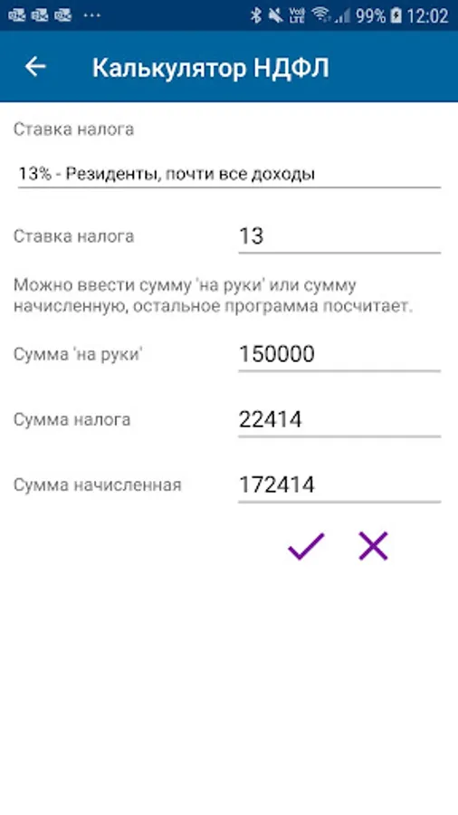 personal income tax calculator: calculation of tax amount, amount payable, amount "on hand"