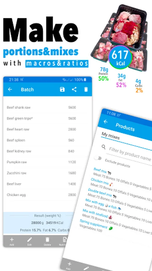 - manage list of products you use in feeding with additional data like calories, protein, fat, carbs, and price of the product