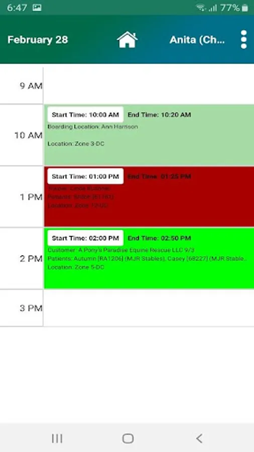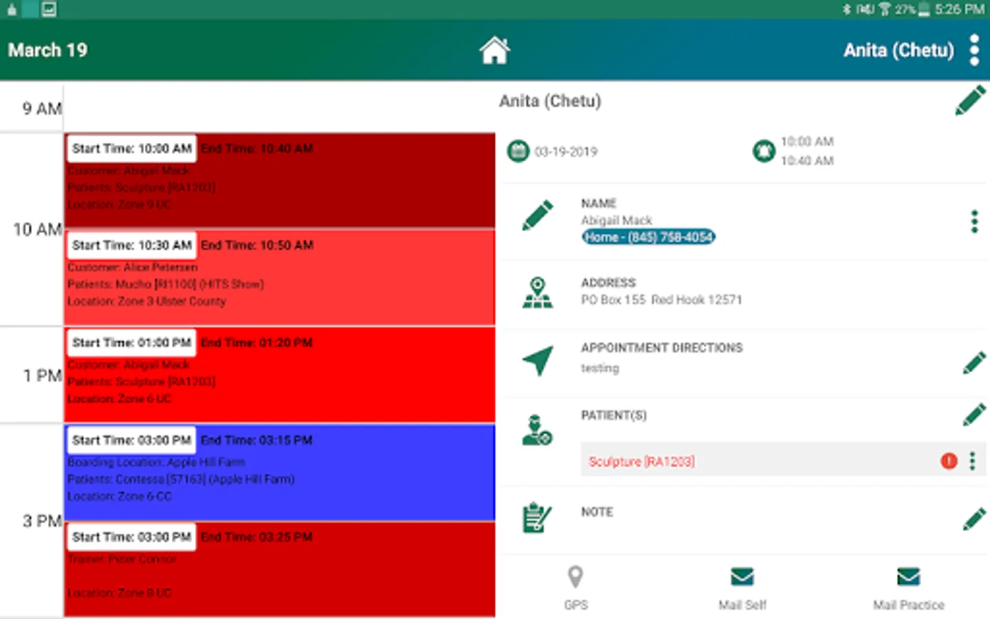 The HVMS Mobile app allows users of HVMS to view their calendars in real time. In addition to the standard month view and day view for appointments, there is also an upcoming appointment screen to see the next appointments in sequence. Appointments have a GPS pin pointer for return visits to customers/boarding location/trainer using Google Maps.