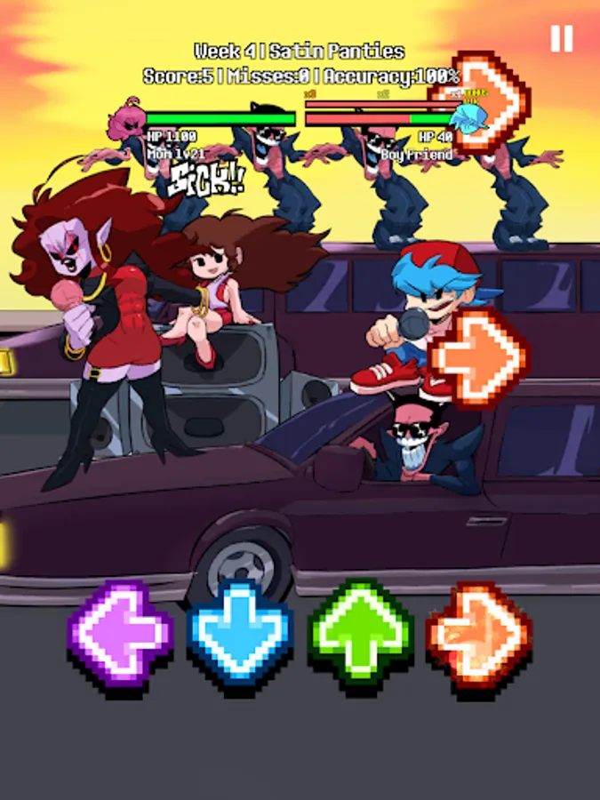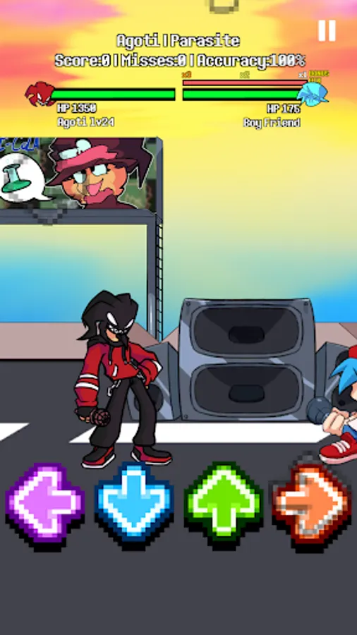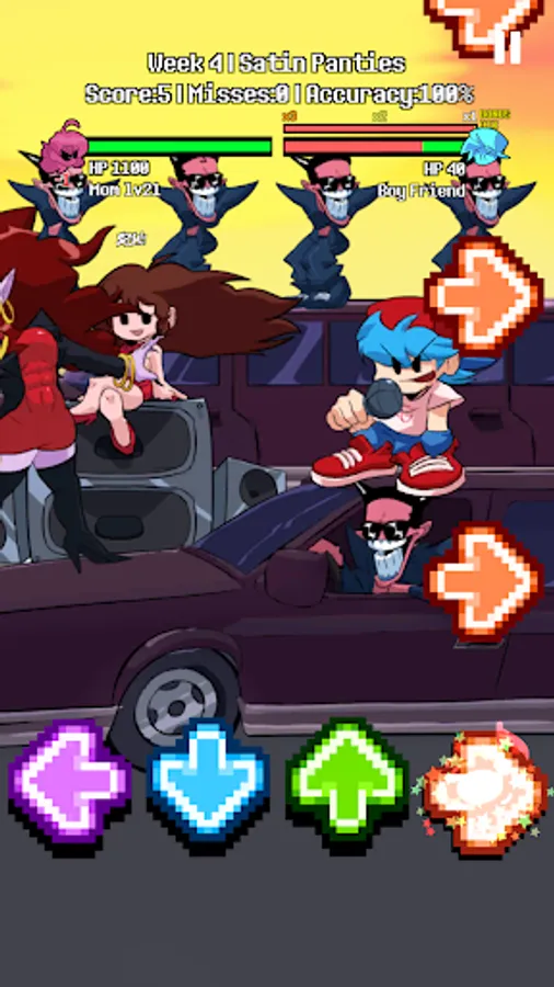 It is really easy to play this game. You just need to finish missions. Try your best to beat your enemies like FNF gameplay by using right arrows up, down, left, and right at every mission place. Keep up that good work to the end! Then, Dad of your Girl friend will let you hang out with her little girl whole night.