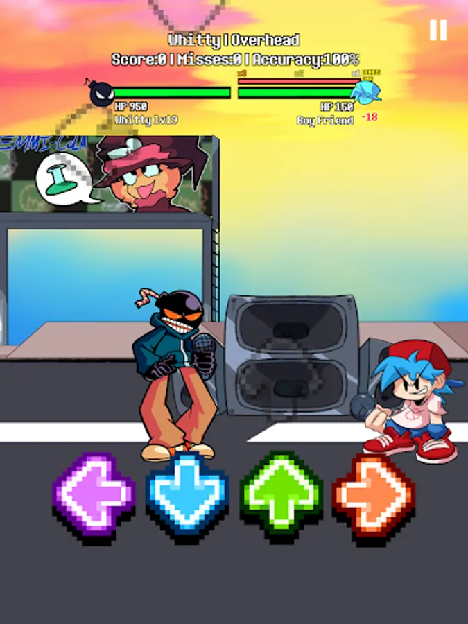 In this music city, you can have many many chances to challenge yourself by beating other enemies (Whitty, Tricky, Pico, Tankman,...) or getting new friends (Shaggy, Tord, Matt, Bob, Miku,...).