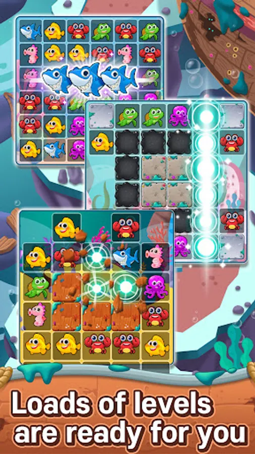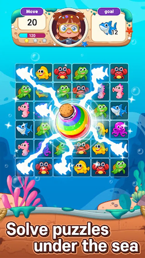Change and match cute underwater friends, solve various missions, and enjoy the joy of victory!