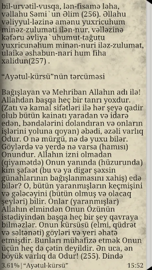 "Ayətül-course" Quraani-kəri my Bəqərə surəs ayəsinə verilən name is the 255-c. Ayədə "God's course" ifadəs the işlədildi three of her this name Assigned.