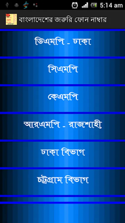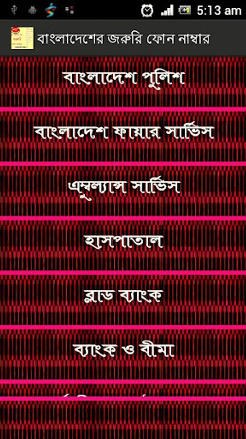 App provides you an instant, on-the-go access to the information of police, Fire Service, Ambulance, Hospital, Blood Bank, Bank, Farmacias, Rab,, available in all areas across Bangladesh.