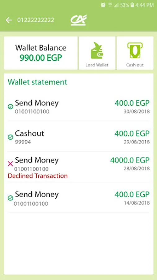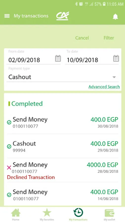- Send money from your wallet to any other wallet (in CAE or any other bank in Egypt)