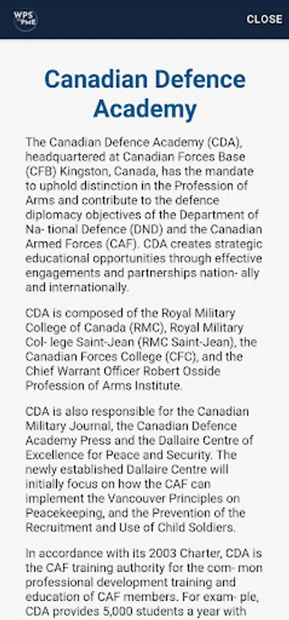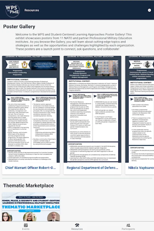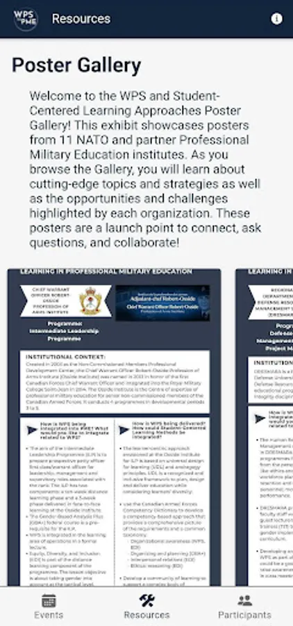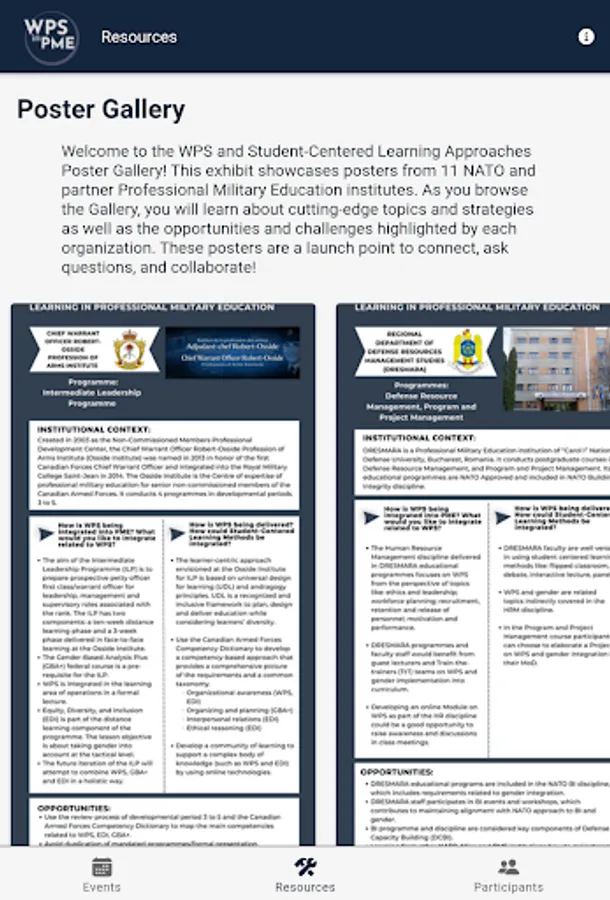 The objective of this application is to make the domain of Women, Peace and Security (WPS) tangible, approachable, and readily available to those engaged in Professional Military Education (PME).