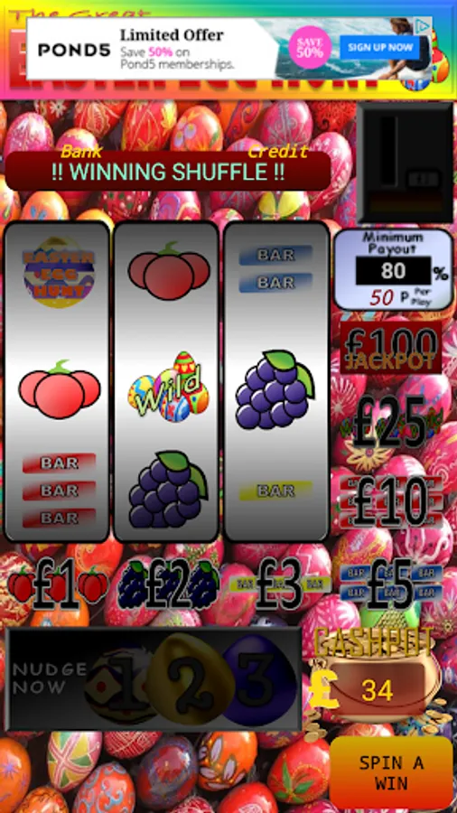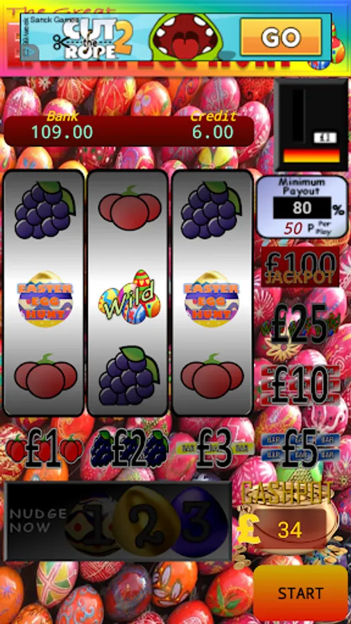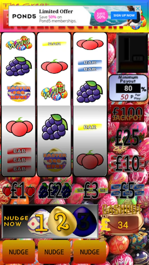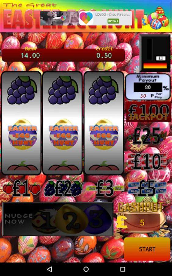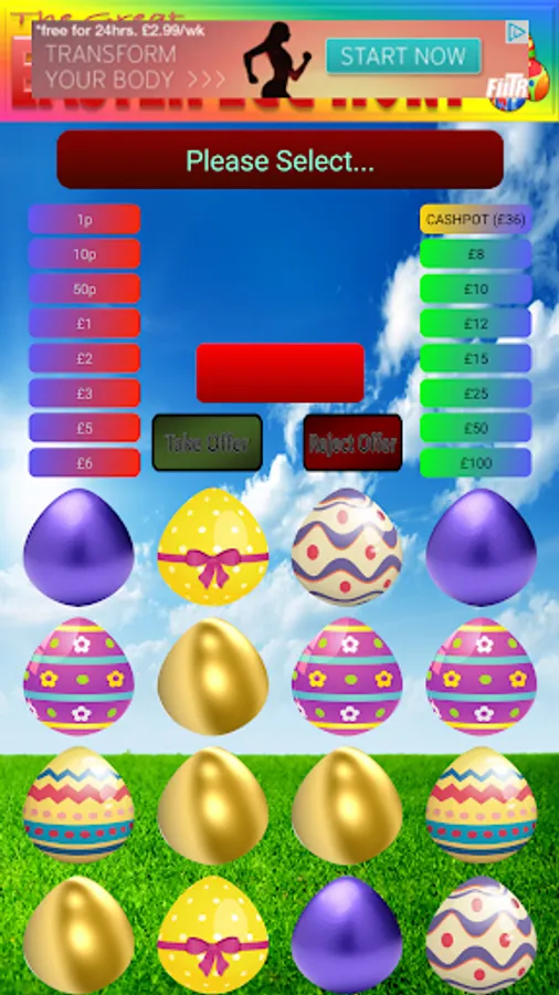Initially you will be presented with 16 Easter eggs. Each with a unique cash treat in the centre. These values vary from 1p all the way up to the mighty £100 Jackpot.