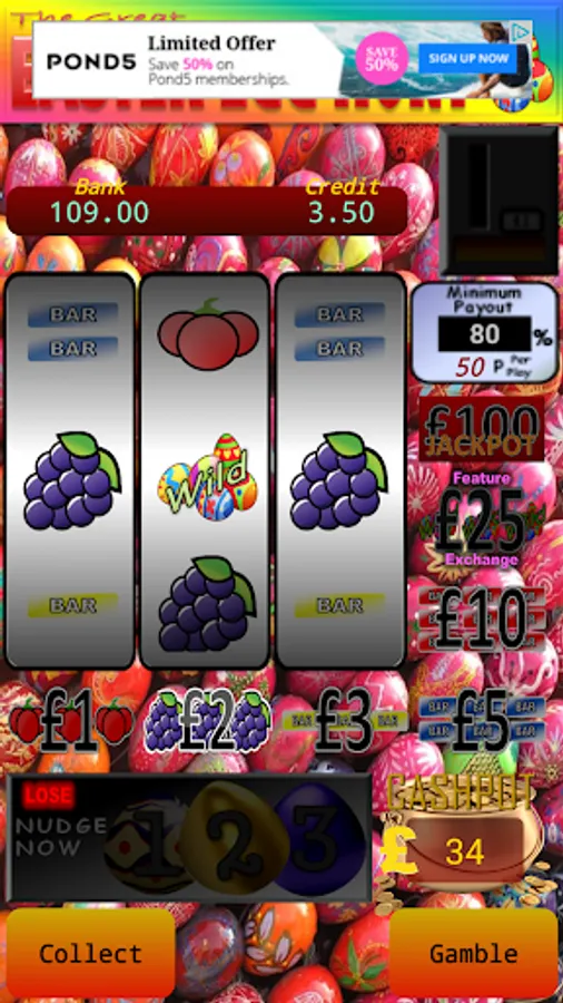 Whilst gambling you way up through the amounts keeps your eyes peeled for the chance to exchange you win for entry into “The Great Easter Egg Hunt” feature.