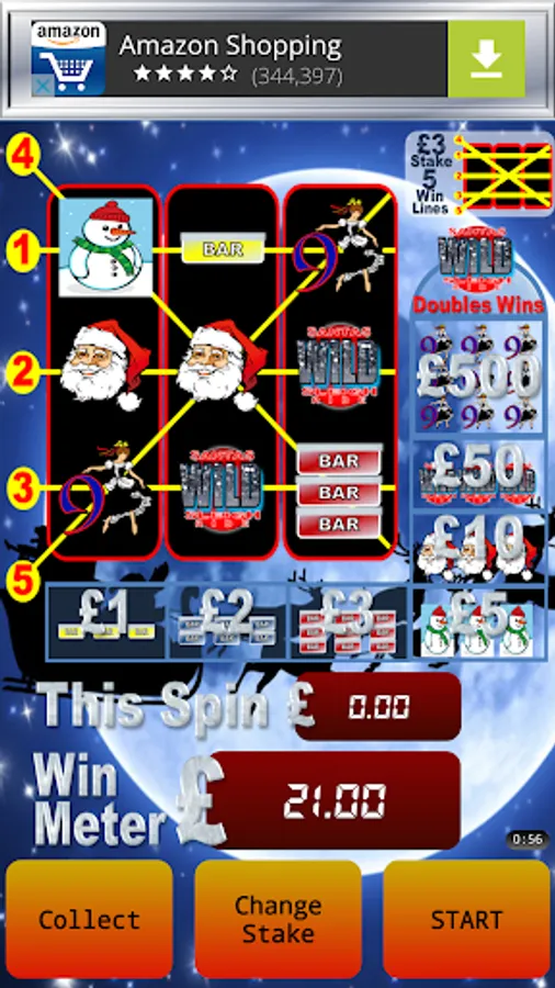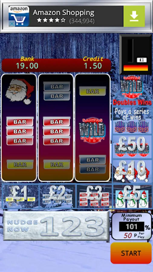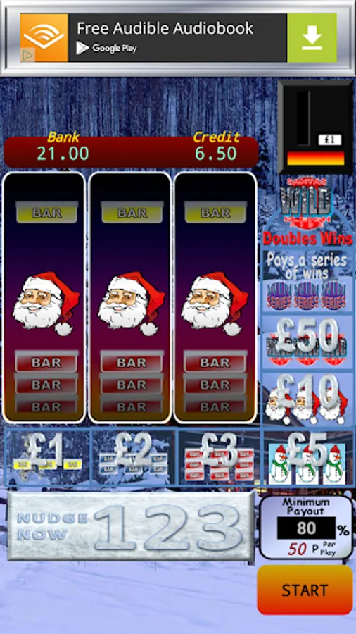 The "Win Meter" adds up all you winnings to date, allowing you to risk part of the "Win Meter" value to try and win even more. Play the reels to try and get a winning combination. Match the bars, the Snowmen, the Santa or even the Wild symbols.