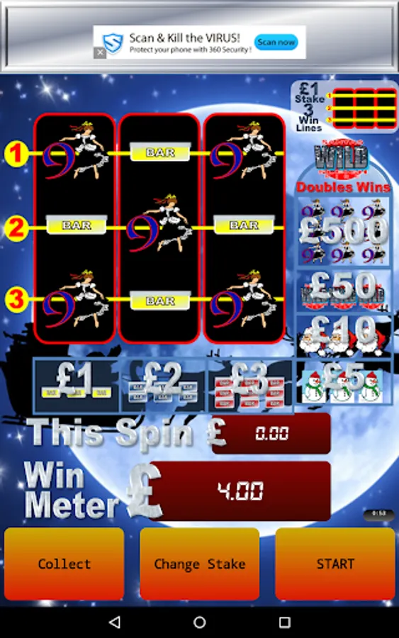 Now that you have a win on the lower reels, play your winnings on the "Win Meter" win anything up and including the festive £500 JACKPOT.