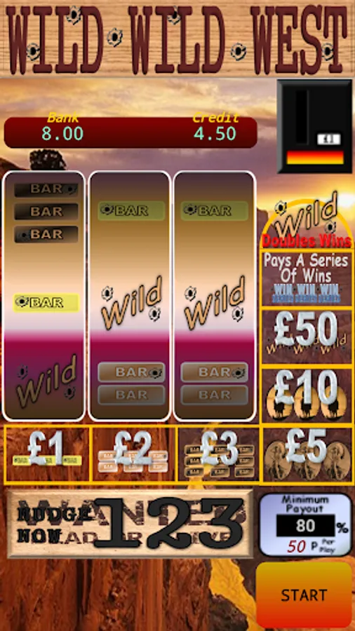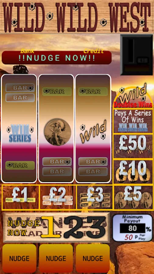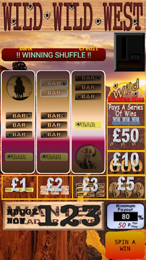 This game has as standard real life percentage payout, and behaviours. The machine is presently set to 50p per play and pays out 80% of everything you put in. Just like a pub in any pub or club would.