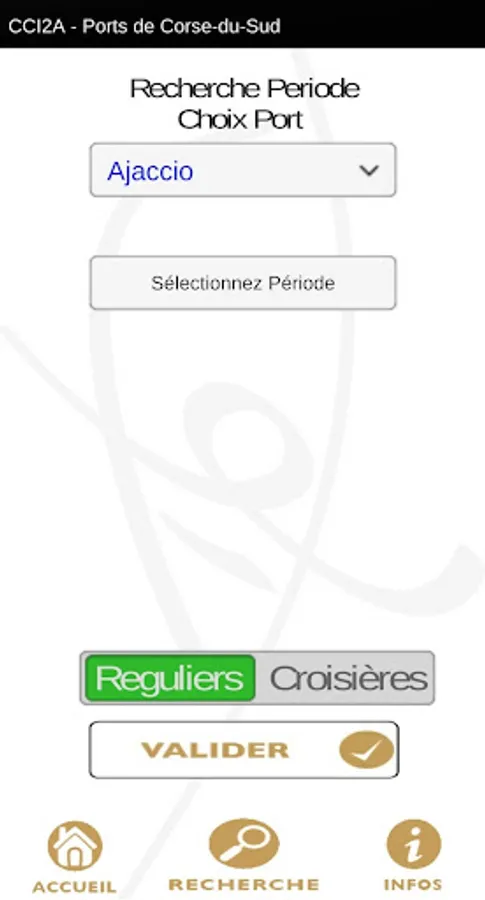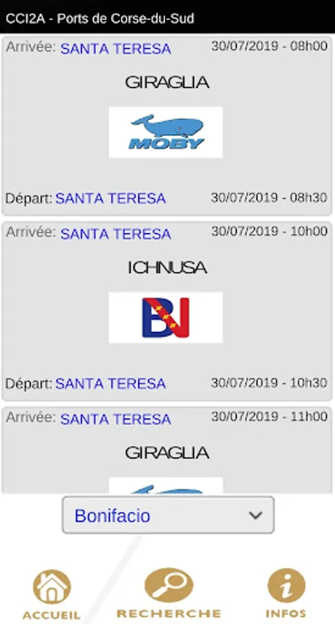 This application offers you to consult / search schedules of ships docking in the ports of Corse-Du-Sud. As well as the main regular airlines serving Corsica.