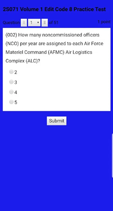 Quiz that covers Volume 3 of the 2S071 Air Force CDCs UREs. This Quiz was created to prepare for the EOC and CompReview sections of the CDC Test. The questions and answers were designed to randomize in order to prevent photographic memory of the placement of answers.