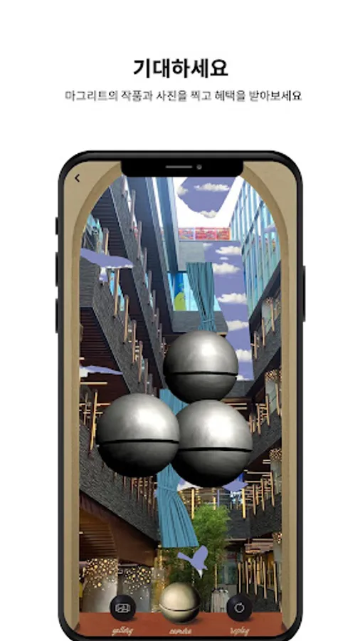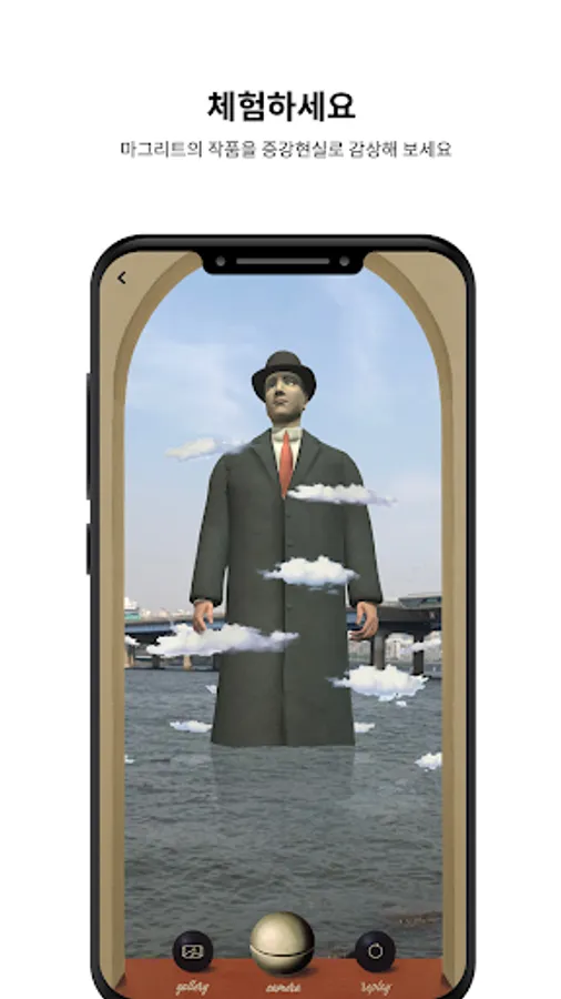 2. Try moving while looking at the floor with your smartphone camera. You can experience various interactions by touching the works of Magritte.