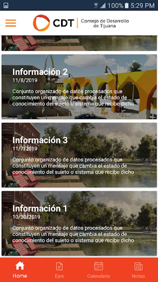 Internal information application for directors and members of CDT that contains the work axis projects, informative notes, relevant information, CDT events and administration of own meetings