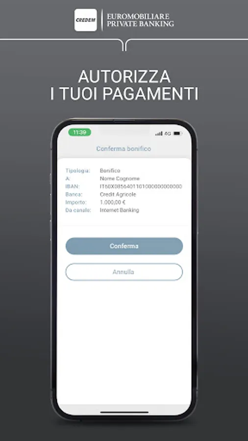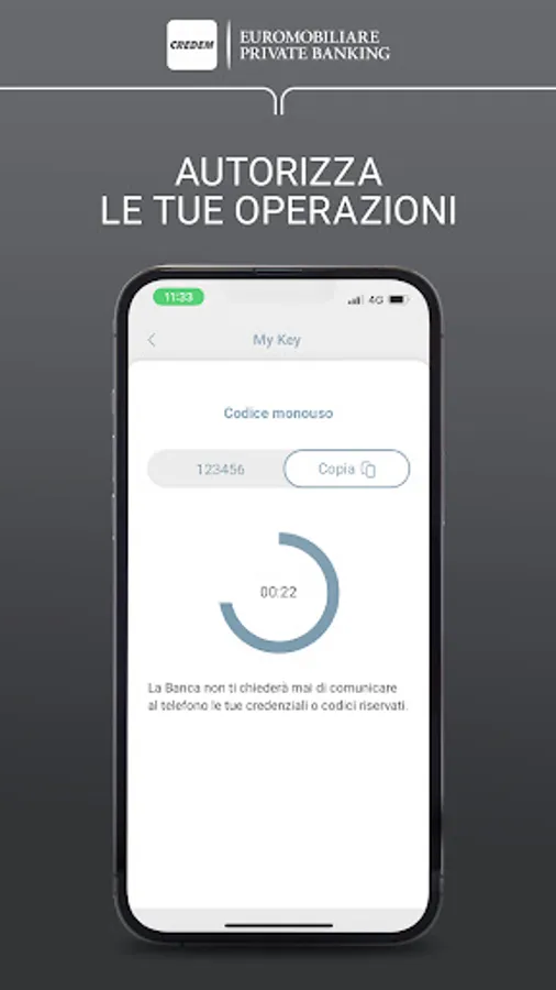 Business On App is the Credem Euromobiliare Private Banking app, dedicated to businesses, for authorizing transaction transactions carried out via Internet Banking (Business On).