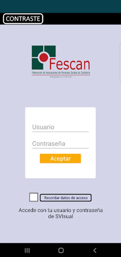 "Fescan-SVILS 1.0" is an application that the Federation of Associations of Deaf People of Cantabria (FESCAN) makes available to deaf people who have requested interpretation services in sign language so that, if they so wish, these can be covered remotely through a video interpreting service, enabling FESCAN to attend to a greater number of interpreting services in the area of its autonomous community by eliminating travel times that
