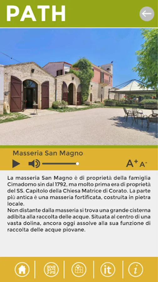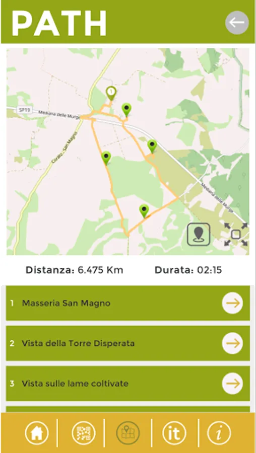 It is possible to access the content automatically, both via GPS, every time you approach a POI (Point of interest), and via QR code to be scanned independently, from your device.