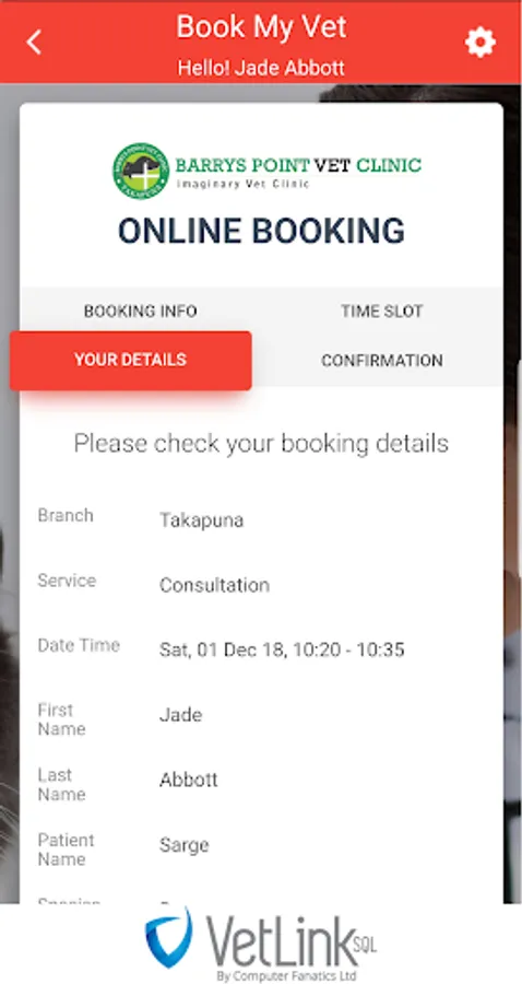 - Lock in your favourite Vet Clinic and Branch