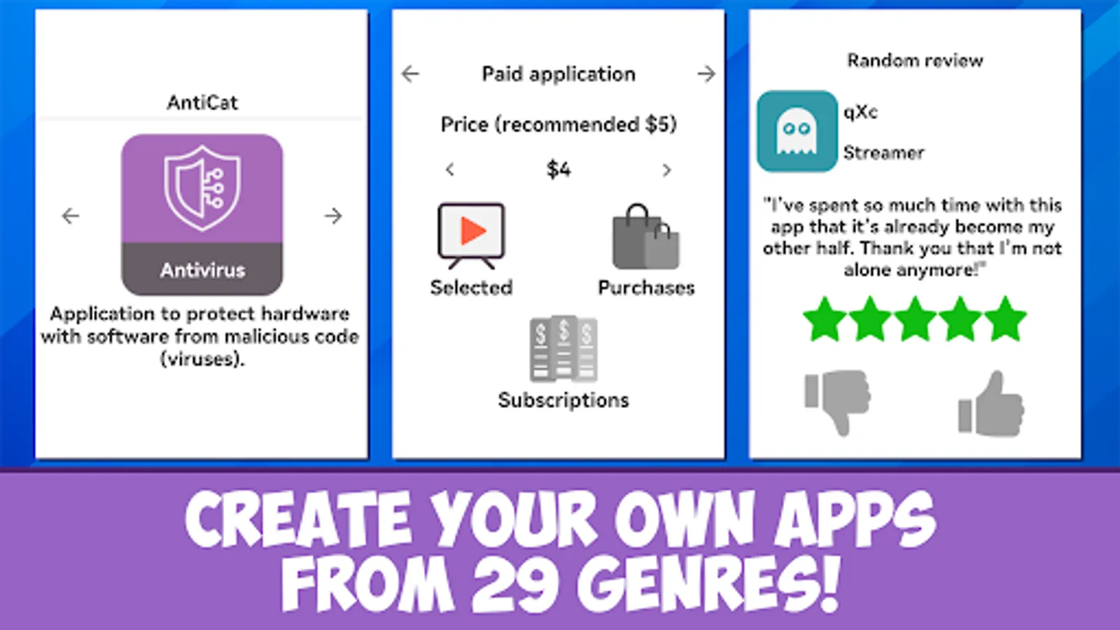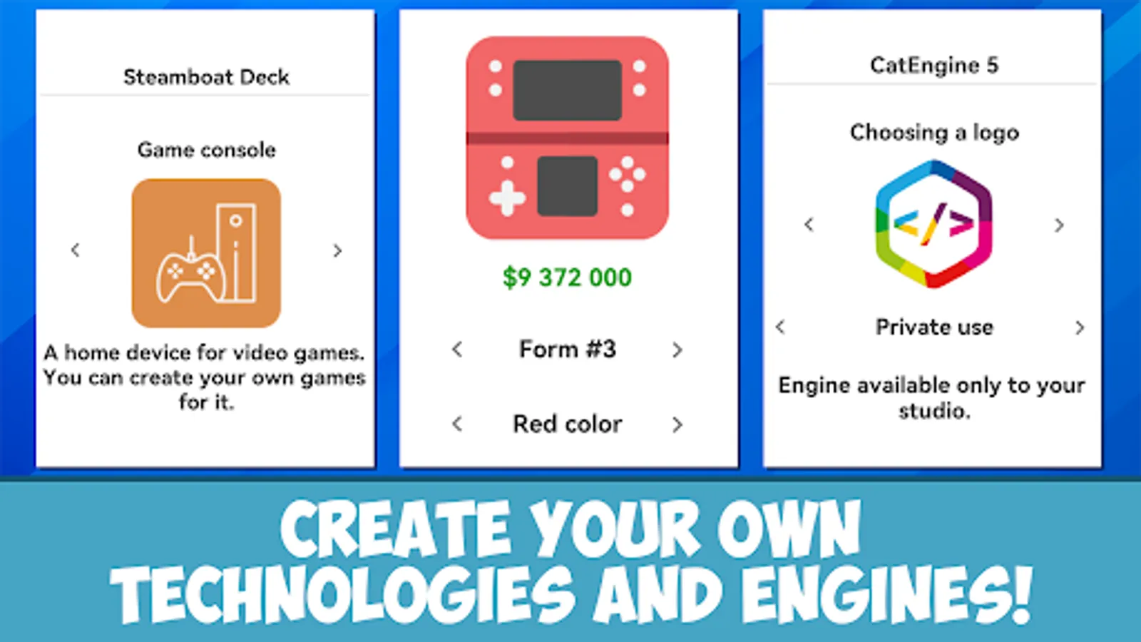 - Release your own equipment, for which you release games and applications! The ability to produce your own smartphones or consoles, choosing their shape, color, details from a variety of options, and so on!