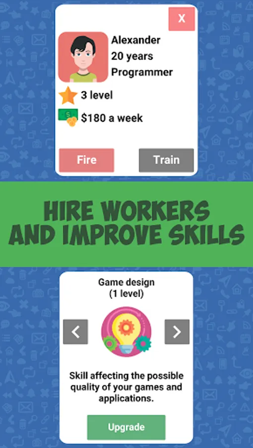 - Create mobile games and applications of different genres and directions. You can choose the graphics, game sizes, icons for them and much more. All released games are saved and you can show them to your friends.
