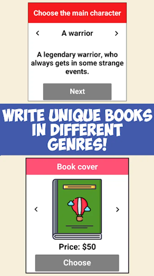 - WRITE real books: from book’s cover and design to writing the plot and book’s ending! If you can’t write for yourself - the game will generate the unique book plot!