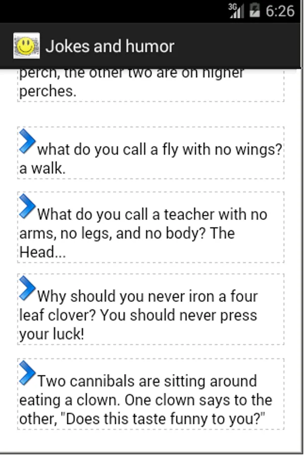 A joke is something spoken, written, or Done with humorous intent. [1] Jokes May have many different forms, eg, a single word or a gesture (owners Considered in context), a question-answer, or a whole short story . The word "joke" has a number of synonyms, treats including wisecrack, gag, prank, quip, jest and jape. [1] To Achieve Their end, jokes May employ irony, sarcasm, word play and other devices. Jokes May have a punch line, ie, an ending to make it humorous. (Wikipedia