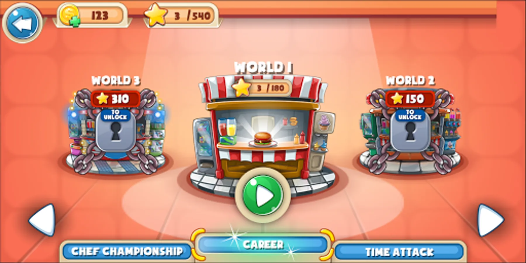 Chef Championship : Where you will compete with top chefs around the word and if you win 1st , 2nd or 3rd price you will be awarded with particular coins.