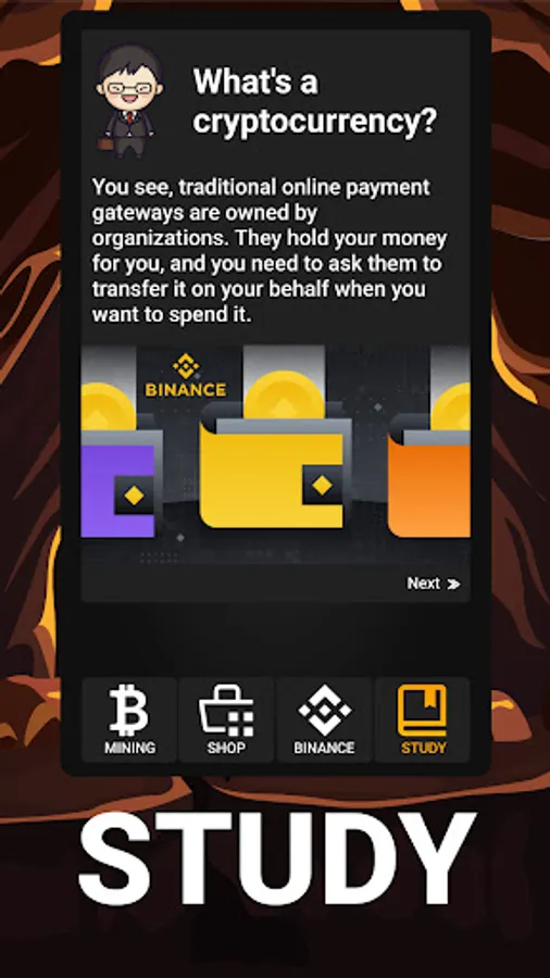 Japanese millionaire Akio. He gives instructions and gives a pickaxe. Next you need to mine bitcoins