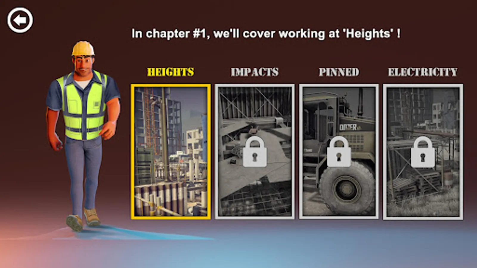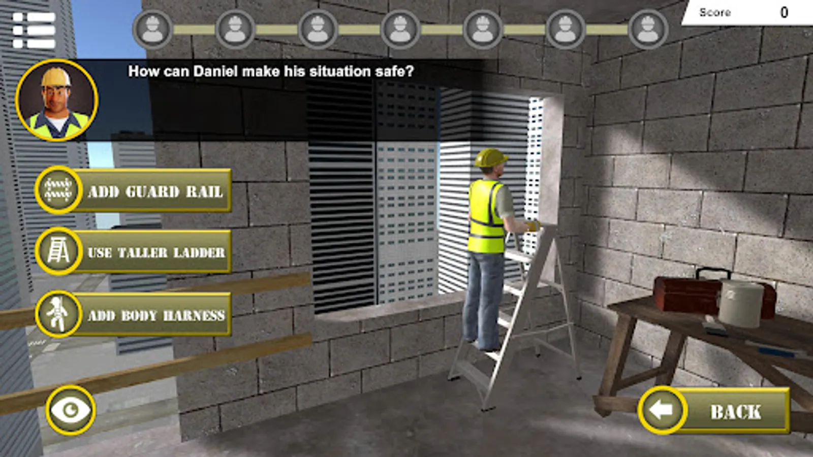 HazApp includes four unique chapters that each focus on one of OSHA’s four main construction hazards: Falls, Struck By, Caught In/Between, and Electrocution. In each chapter, you encounter multiple scenarios on the 3D construction site where there are hazardous situations. Earn points by identifying the hazard and providing the best solution to make the situation safe for all workers. Play through multiple times to apply what you’ve learned and try to beat your high score!