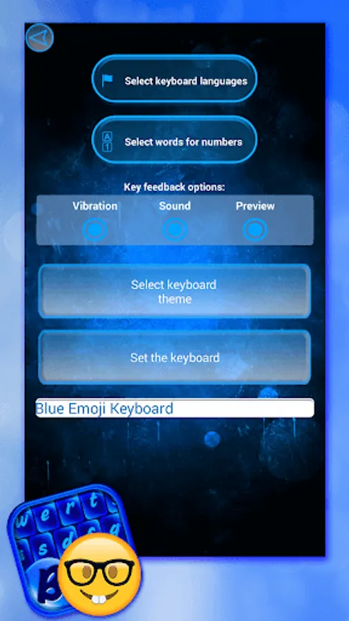 Illuminate your screen with “blue light”! Set up free Blue Emoji Keyboard Themes and enjoy the best apps for boys! Blue picture keyboard with emoji will make your smartphone look so good! If you’ve been searching for “blue keyboard”, this perfect app will make your phone keypad amazing. You want a new keyboard for your device, but you find only girly keyboards? Finally, the “keyboards for boys” in blue. Try out this “color blue keyboard” and show everyone that you are a macho man! Type with style! Use cool keyboard sounds and enjoy beautiful blue keyboard design. It features many different types of emoji and emoticons, beautiful themes and many settings that wait to be discovered!