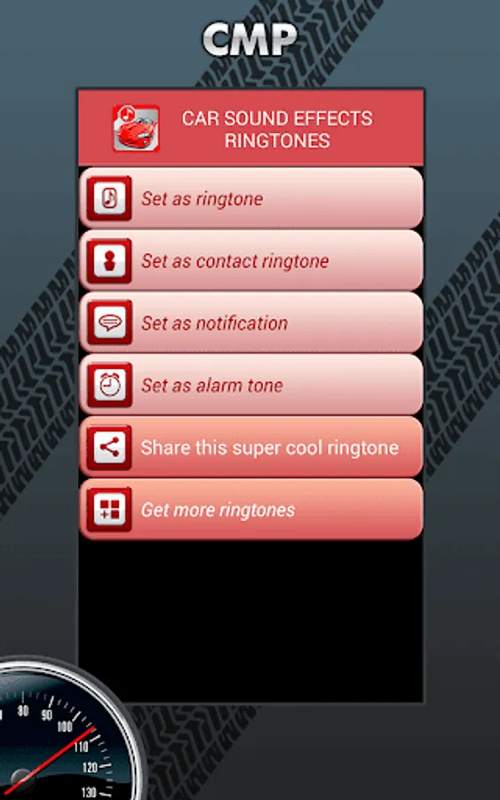 Pick your favorite “crazy tone” and assign each of the “Car Sound Effects Ringtones” to a specific contact in your phone book! Wake up with loud alarm ringtones of cars and feed your need for maximum speed with this awesome musical app for free! You don't need to go online to search for “ringtone for text messages and notifications”, because these “free ringtones for Android™ phone” has everything that you need to customize your music gallery box! Enjoy the sound of tire blowing out in this “mp3 ringtones download”! Finally you can have great auto sounds for your phone! Change the default “Android™ ringtones” with new “car mp3 sounds”! If you are a car fanatic, join millions of followers of these original mp3 ringtones!