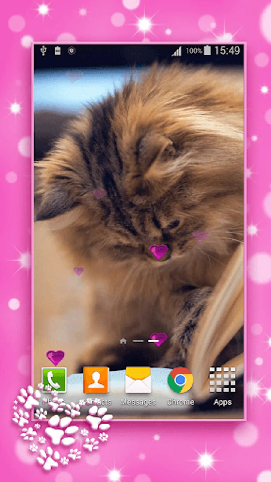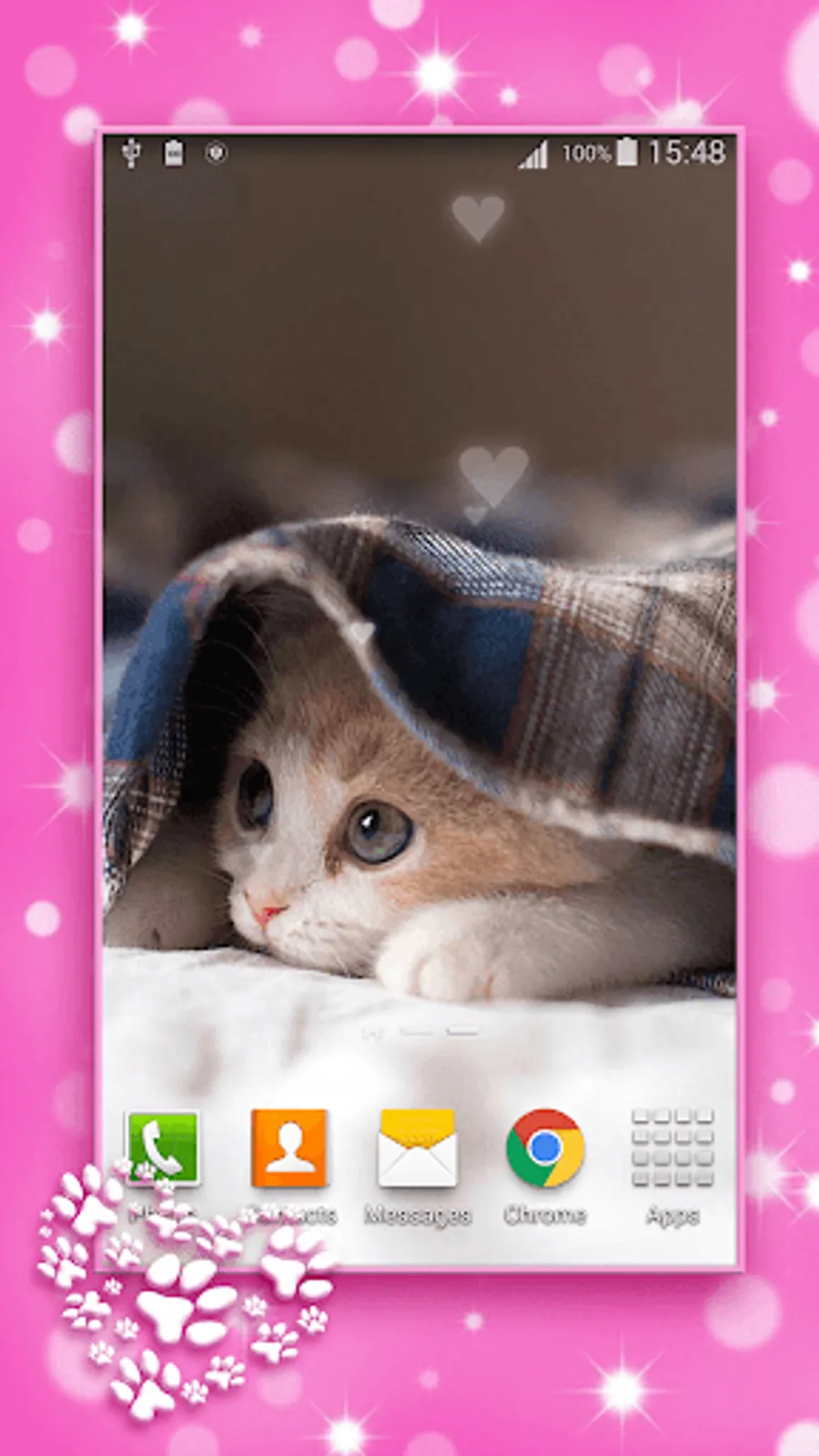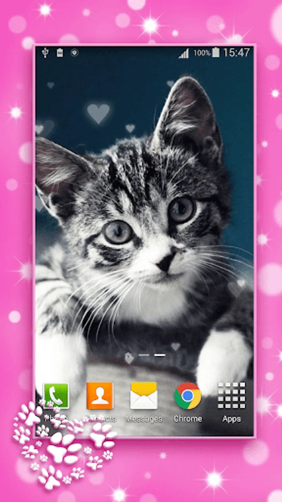 Meow, meow, kitty cat! Cat lovers only! If you prefer cats more than dogs, get this Cute Kittens Live Wallpaper, the best animated backgrounds free download. Watch your full screen “baby kittens” everyday until they become your favorite pets. Having a cute cat virtual pet on your mobile background is a daydream for every cat lover. Click on cute kitten wallpaper free download and get amazing sight of free kitten cat images hd. Sweet “cats wallpaper” will look great on your phone and tablet device. Mesmerizing sight of adorable cute baby animals will fill your heart with joy. Do you have one so cute cat pet at home? Get a bunch of sweet kittens on your display and find yourself surrounded with cute cats pictures. Welcome the cat world on our home screen. These free animated wallpaper backgrounds with cats and falling particles like paws and sparks will create a wonderful atmosphere on your mobile wallpaper.
