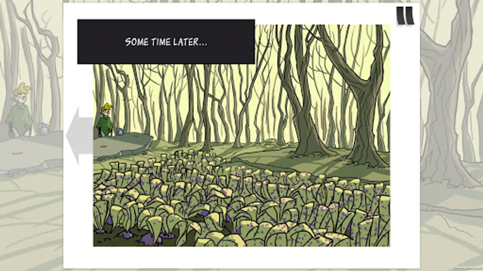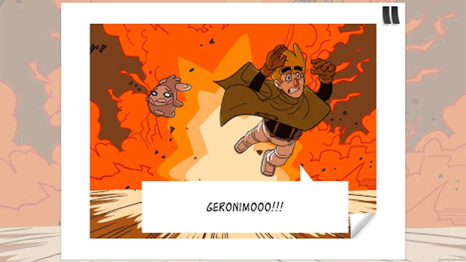 - Through the comic book, turn the pages, click and move to progress through the story.