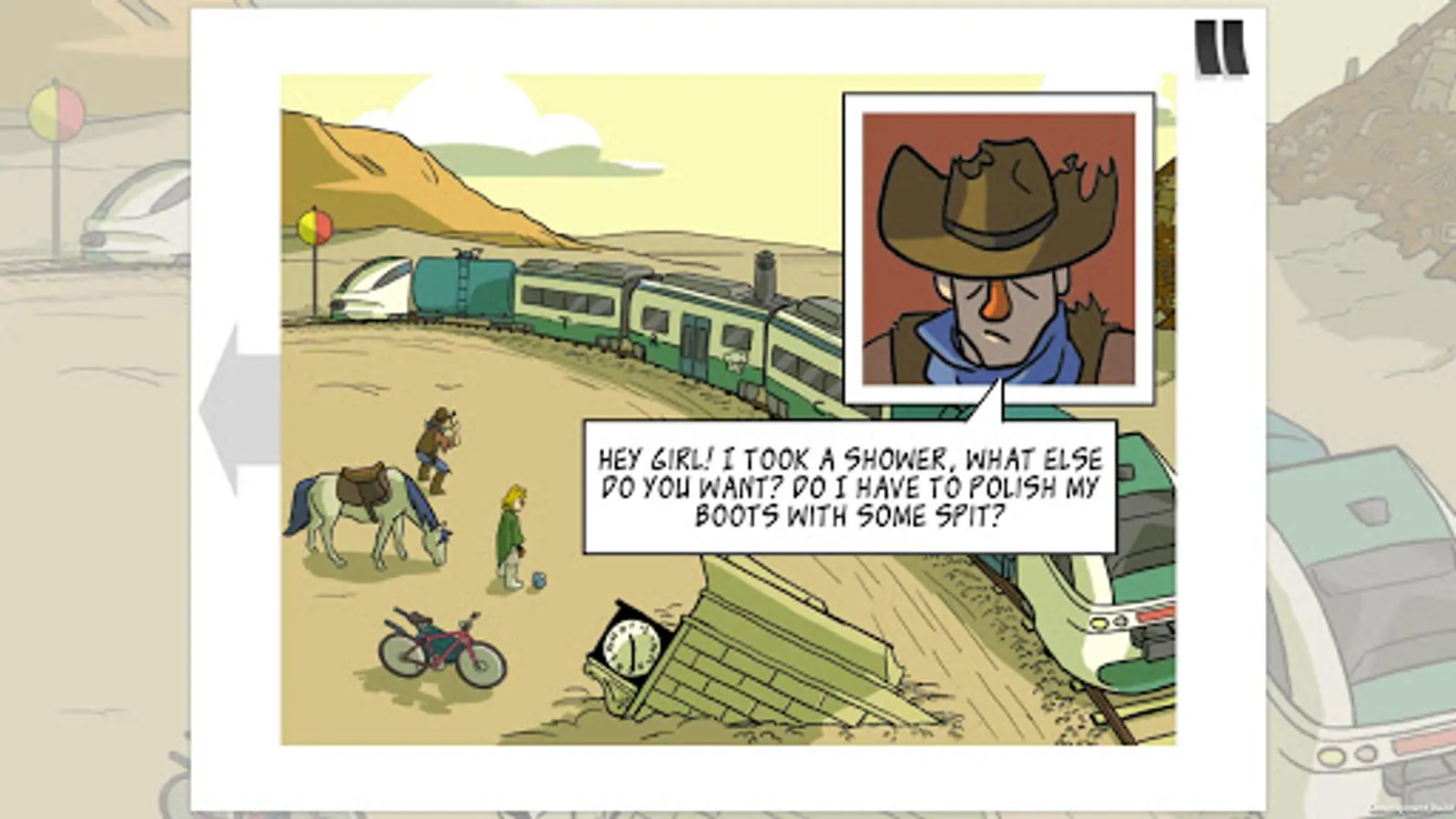 Solve the puzzles by choosing the correct moves in this interactive comic book style game and you'll reach the end of this funny graphic adventure!