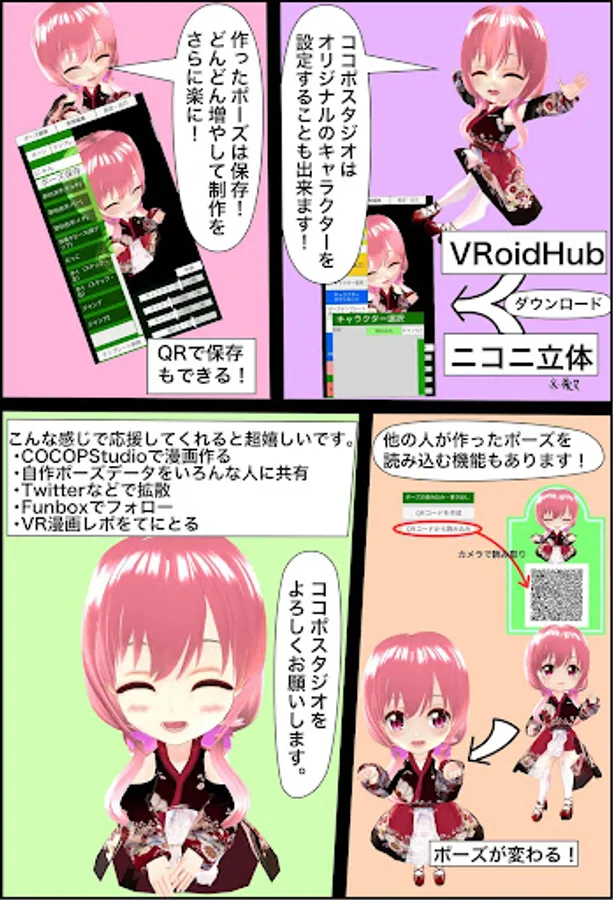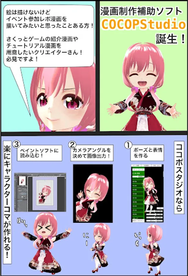 COCOPStudio is a photography studio where you can set original characters and take pictures that can be used for posters and manga production!